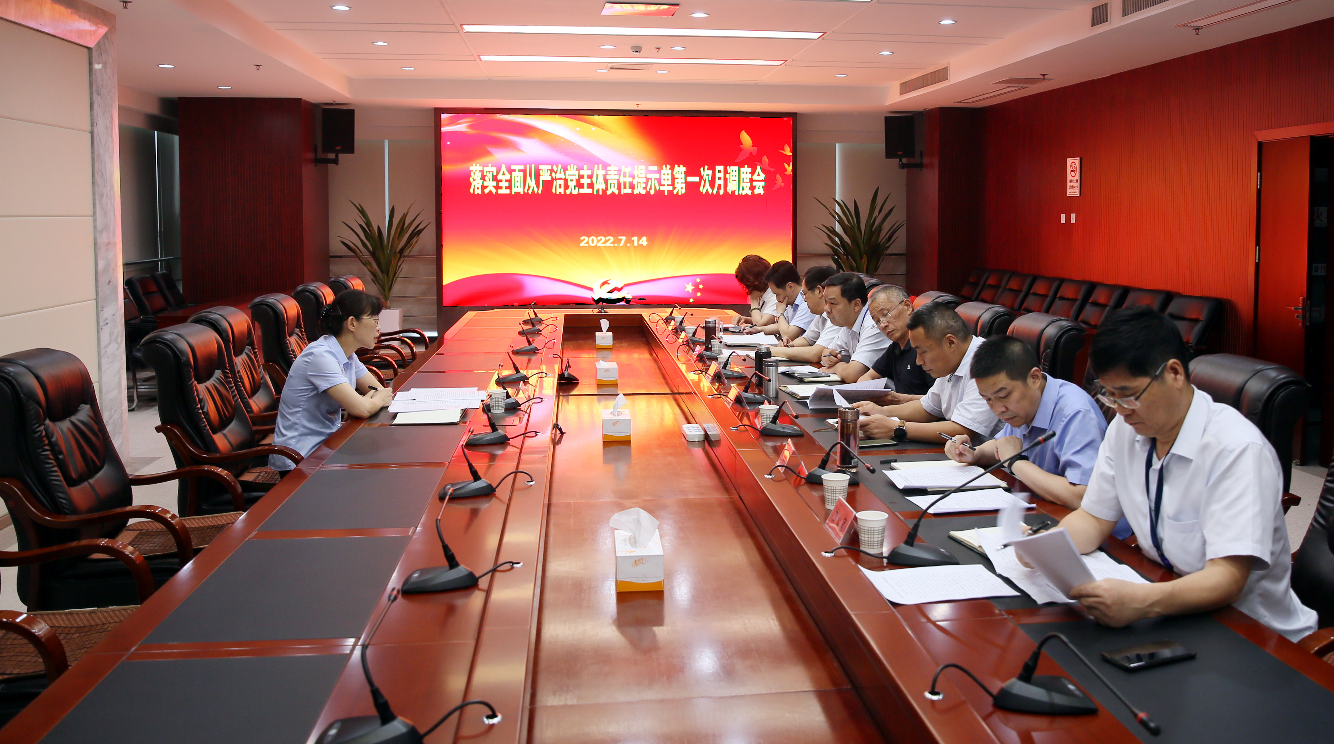 7月14日上午,集團(tuán)公司召開(kāi)落實(shí)全面從嚴(yán)治黨主體責(zé)任提示單第一次月調(diào)度會(huì)。集團(tuán)公司紀(jì)委書(shū)記汪群主持會(huì)議并講話。