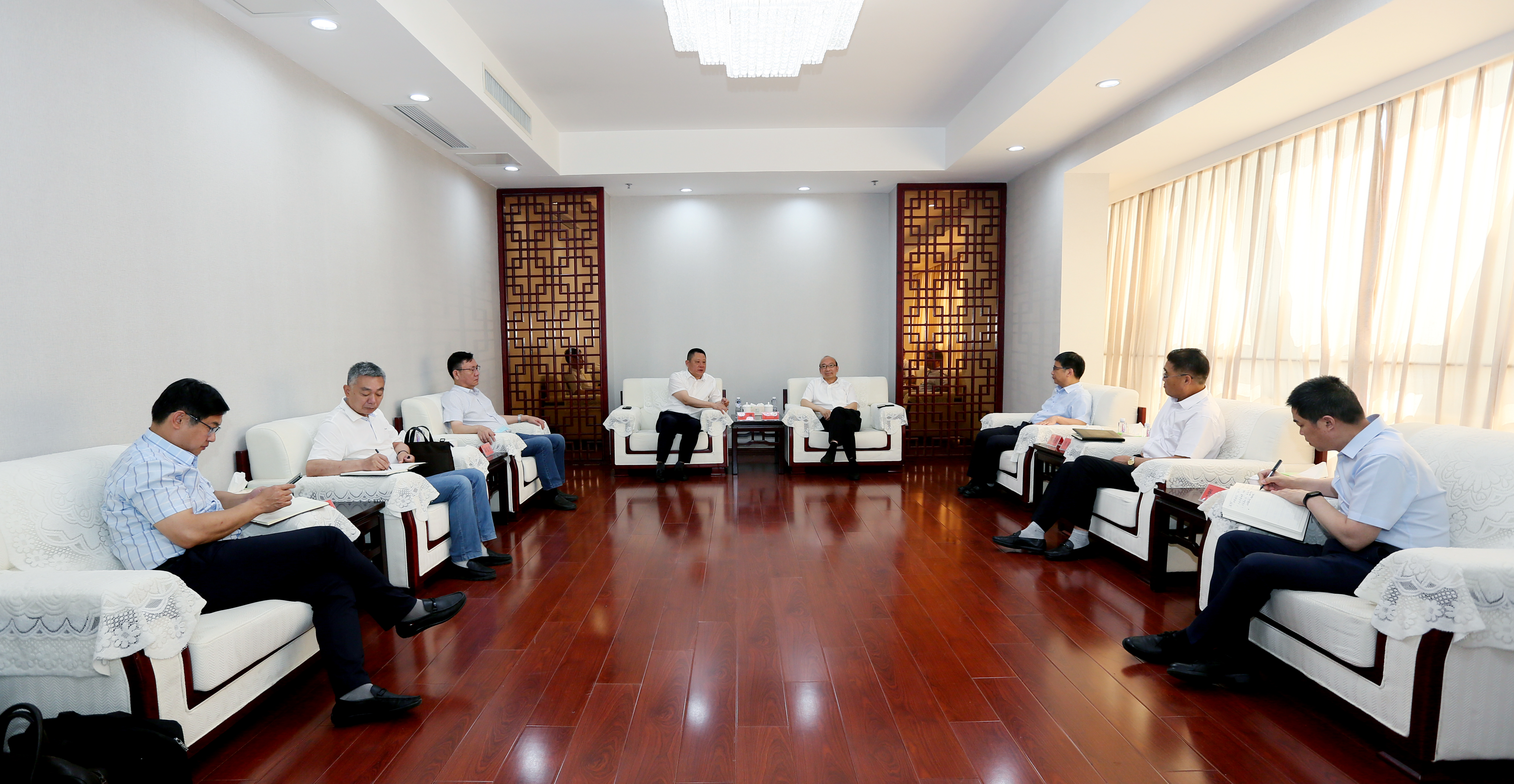 6月7日上午,灌云縣委書記蘇鋒,縣人大主任、臨港產(chǎn)業(yè)區(qū)黨工委書記掌文勝,縣人大副主任呂濤,縣委辦主任、經(jīng)濟(jì)開發(fā)區(qū)主任趙雷生等一行到訪集團(tuán)。集團(tuán)黨委書記、董事長丁銳、常務(wù)副總經(jīng)理?xiàng)顕?、副總?jīng)理劉承志接待會見。