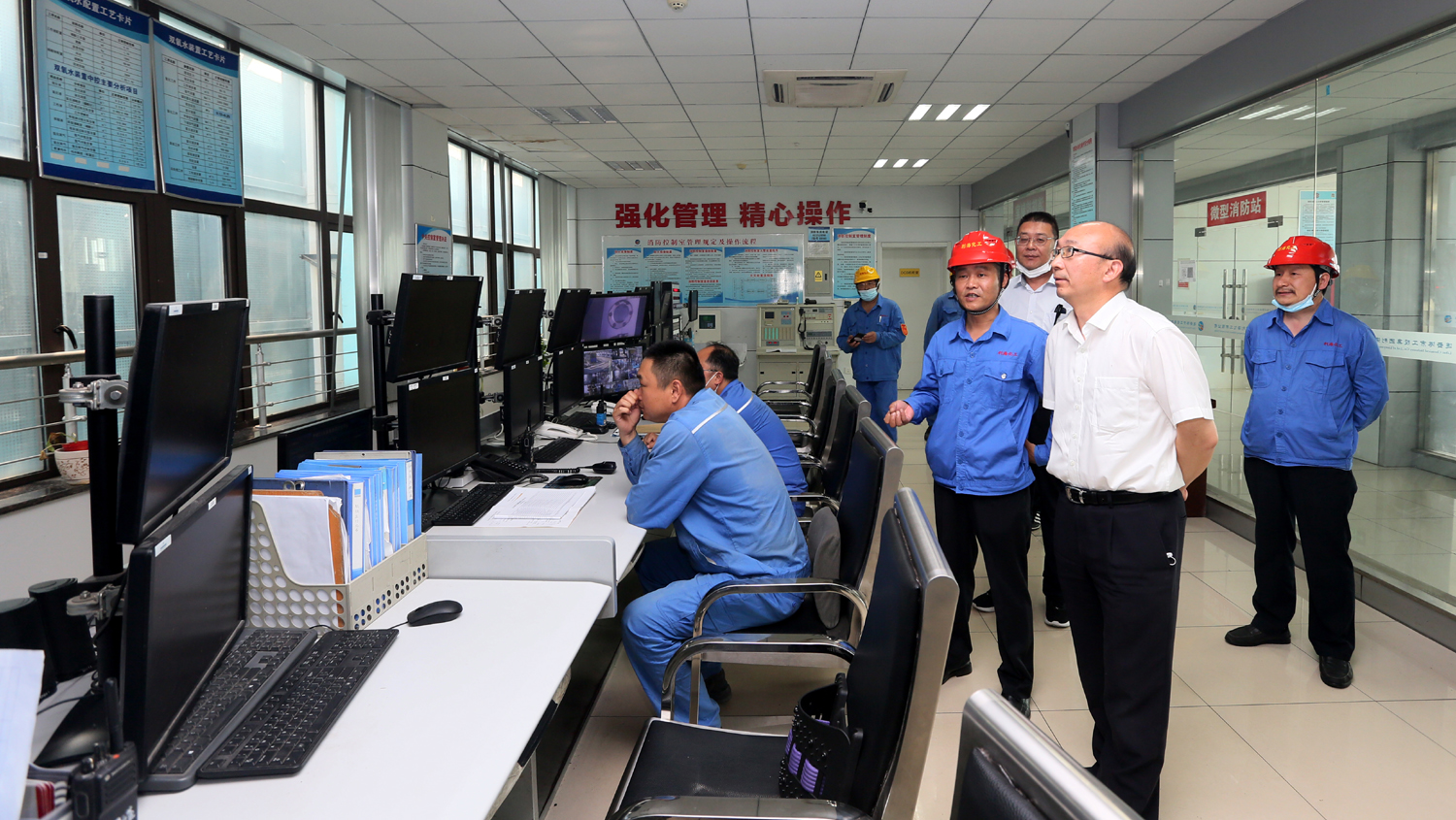 丁銳先后實地察看了利海公司生產(chǎn)廠區(qū)DCS控制室和各裝置運行情況,詳細了解生產(chǎn)經(jīng)營、安全環(huán)保、疫情防控等情況。丁銳指出,安全生產(chǎn)是企業(yè)高質(zhì)發(fā)展的基石,化工企業(yè)安全生產(chǎn)更是重中之重,要嚴格履行好領(lǐng)導(dǎo)干部安全生產(chǎn)“一崗雙責(zé)”制度,壓實壓緊企業(yè)安全生產(chǎn)主體責(zé)任,時刻守住把牢安全生產(chǎn)底線。要進一步完善應(yīng)急機制,強化值班值守,加強安全培訓(xùn)、演練和檢查,不斷提升本質(zhì)安全水平。要完善隱患整改落實長效機制,確保安全問題不解決、不放手,隱患問題不整改、不放過,全力營造良好的安全生產(chǎn)環(huán)境。