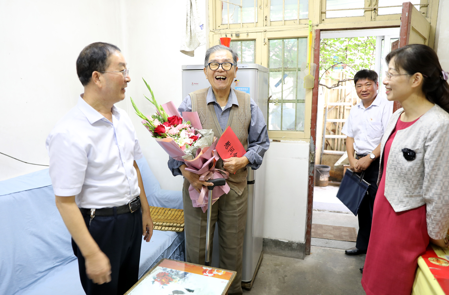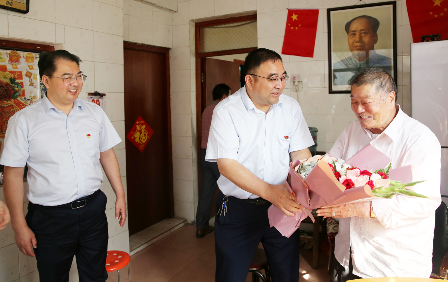 國(guó)慶前夕,9月29日上午,集團(tuán)公司董事長(zhǎng)、黨委書記楊龍,總經(jīng)理胡建明、黨委副書記戴鴻鳴、紀(jì)委書記汪群等領(lǐng)導(dǎo)分組走訪慰問(wèn)部分建國(guó)前參加工作的老黨員、老干部,為他們送去慰問(wèn)金和鮮花,同慶新中國(guó)七十周歲華誕。