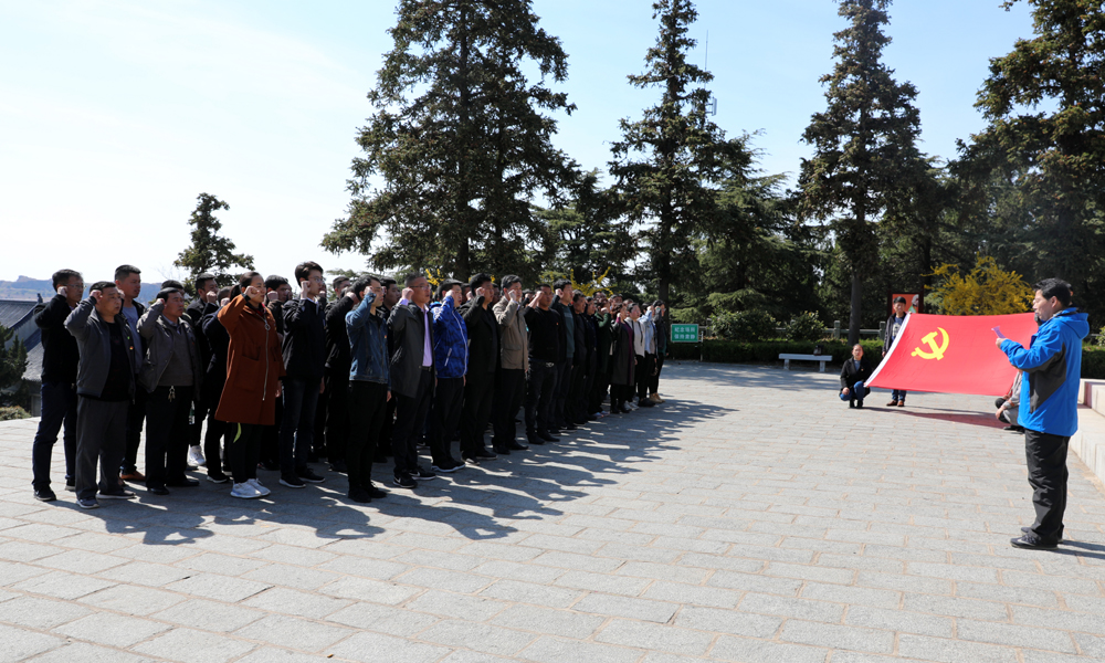 青口投資公司黨委組織黨員干部80余人到贛榆抗日山烈士陵園小沙東海戰(zhàn)烈士墓前,為革命先烈敬獻(xiàn)花籃,長久肅立默哀,重溫入黨誓詞。