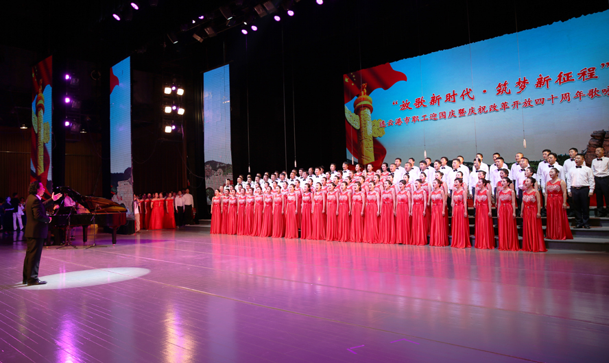 9月28日下午,由市委宣傳部、市總工會(huì)、市文廣新局聯(lián)合舉辦的“放歌新時(shí)代·筑夢(mèng)新征程”——連云港市職工迎國(guó)慶暨慶祝改革開放四十周年歌詠比賽在市藝術(shù)中心隆重舉行。來自各縣區(qū)、各條戰(zhàn)線的16支代表隊(duì)參加比賽,經(jīng)過3個(gè)多小時(shí)緊張角逐,集團(tuán)公司組織的100人合唱隊(duì)以《走向復(fù)興》、《天路》兩首激昂向上的歌曲脫穎而出,獲得一等獎(jiǎng)。
