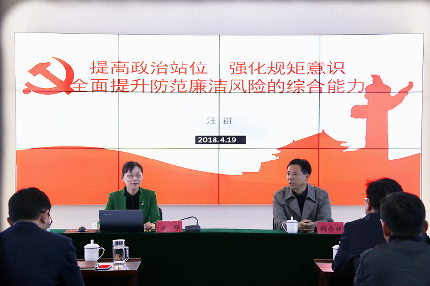 為進(jìn)一步深入學(xué)習(xí)貫徹黨的十九大會(huì)議精神,強(qiáng)化正風(fēng)肅紀(jì),不斷鞏固拓展落實(shí)中央八項(xiàng)規(guī)定精神成果,4月19日下午,集團(tuán)公司紀(jì)委書記汪群在資產(chǎn)管理公司上了一堂《提高政治站位,強(qiáng)化規(guī)矩意識(shí),全面提升防范廉潔風(fēng)險(xiǎn)的綜合能力》廉政黨課,該公司50多名干部職工聆聽了黨課。