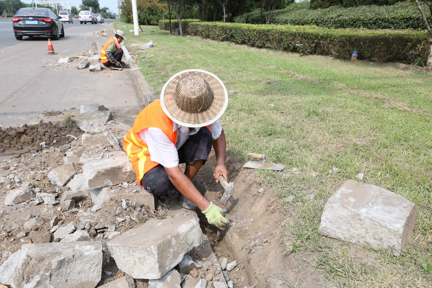 位于連云港東站附近的新光路,是開發(fā)區(qū)境內(nèi)的一條主要運輸?shù)缆罚?jīng)常有重型卡車經(jīng)過,每天川流不息的車輛不僅給道路增加了運載負荷,也使得道路兩旁的路牙石、人行道磚等受碾壓、撞擊、剮蹭等因素影響,破損非常嚴重。為了加快工程進度,降低人工成本,工程項目部在該路段采取機械施工的方式,很大程度上的提高了項目進度。在項目開展過程中,工程項目部的人員也遇到了許多的困難,新光路由于地處火車站附近,平常車流量大,在施工過程中要注意對來往車輛進行避讓;另外,由于該路段臨近新光小區(qū)、瀾庭觀邸等住宅區(qū),早晚上下班的居民也限制了施工時間短。雖然面臨種種困難,盛達市政公司的施工人員沒有埋怨,而是想方設法去克服。自824日開工以來,截止目前,總長近6000米路段內(nèi)的路牙石以及人行道磚的清理工作已經(jīng)全部完成,下階段,工程項目部還將安排人員進行新路牙石與人行道磚的更換工作,并將開展附近其他道路的修復工作,確保將“創(chuàng)衛(wèi)”工作的開展落實到實處。