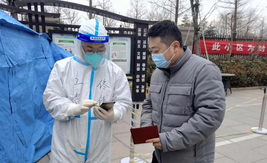 由于海州區(qū)新東街道同科匯豐國際小區(qū)防疫情況比較嚴峻,集團公司從各下屬公司抽調(diào)10人組成志愿服務(wù)隊進入同科匯豐國際小區(qū)開展志愿服務(wù)活動。公司安環(huán)管理部安全員佟偉在接到通知后,于3月16日進入該小區(qū)參與志愿服務(wù)工作。通過社區(qū)分配,他的主要任務(wù)是為核酸檢測居民錄入信息。每天早晨七點半,佟偉穿戴好全套防護服后立即開始工作,直到?jīng)]人來檢測了才能脫掉防護服休息,平均一天要站立工作五、六個小時,需錄入五六百人的信息。操作錄入系統(tǒng)從生疏到熟練,參與志愿服務(wù)以來共錄入信息5600余人。除了信息采集外,佟偉還積極參與防疫指揮部臨時分配的各項任務(wù),入戶排查、上門送菜、秩序維護等等。他說,疫情防控事關(guān)居民生命安全,作為黨員,這時候更要挺身而出,不遺余力為疫情防控貢獻自己的力量。