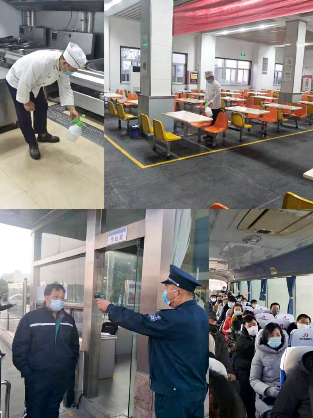 全力做到“三個(gè)全覆蓋”。一是消殺全覆蓋,做到無(wú)死角。結(jié)合疫情防控實(shí)施方案全面開(kāi)展衛(wèi)生整治消殺,對(duì)進(jìn)廠車(chē)輛、食堂、廁所、辦公區(qū)、操作平臺(tái)、作業(yè)電梯等每4小時(shí)進(jìn)行全面消毒。二是摸排全覆蓋,做到無(wú)縫隙。以部門(mén)為單位進(jìn)行全員摸排并建立日?qǐng)?bào)制度。在公司門(mén)口使用溫度檢測(cè)儀器測(cè)量入廠人員體溫,體溫正常允許進(jìn)入,發(fā)現(xiàn)體溫異常人員立即上報(bào)公司安全部或者值班領(lǐng)導(dǎo)執(zhí)行應(yīng)急隔離救援。對(duì)外地回廠人員,特別對(duì)疫區(qū)或途徑疫區(qū)的到廠人員進(jìn)行重點(diǎn)摸排。三是宣傳全覆蓋,做到無(wú)遺漏。利用公司宣傳欄、紅色長(zhǎng)廊、網(wǎng)站、公眾號(hào)、微信群等宣傳陣地開(kāi)展宣傳培訓(xùn),對(duì)員工開(kāi)展疫情防控知識(shí)培訓(xùn)。將公司的防控措施、應(yīng)急預(yù)案、就醫(yī)流程、疫情防護(hù)等應(yīng)知應(yīng)會(huì)的防疫知識(shí)傳達(dá)到每一位員工,引導(dǎo)他們科學(xué)防疫。