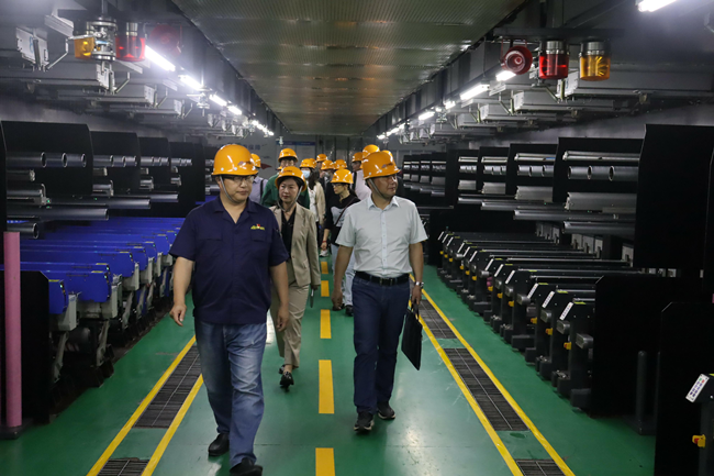 首先,張明星書記一行參觀了展廳、八期生產(chǎn)線。參觀過程中,董事長張斌詳細(xì)介紹了氨綸絲的性能與產(chǎn)品銷售取得的成就,張明星書記對我公司低溫?zé)嵴澈习本]、抗菌氨綸、驅(qū)蚊氨綸及氨綸生產(chǎn)全流程自動化給出了極高評價(jià)。