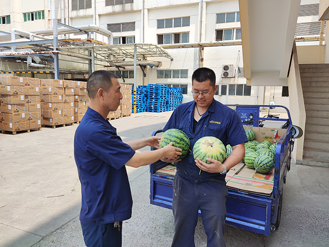 送清涼。入夏以來,我市持續(xù)高溫,公司工會牽頭辦公室向一線員工送防暑降溫用品,在炎炎夏日為一線員工送去飲料、礦泉水等飲品和工會“娘家人”的問候。食堂每日為員工提供綠豆湯、西瓜等夏季瓜果,讓一線工人們在酷暑中感受到了一絲舒心的涼意。為了防止高溫季節(jié)突發(fā)意外,公司安全部購買藿香正氣水、人丹、風(fēng)油精等應(yīng)急藥品發(fā)放到各生產(chǎn)部門,為員工平安度夏做好預(yù)防工作,切實(shí)保障他們的身體健康。