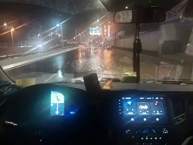 一路上,心急如焚,希望貨車能夠快點,再快點。路上不時遇到同樣掛著橫幅,滿載救援物資的車輛,他們來自祖國各地,大家很有默契的鳴笛互相致敬。剛剛還在享受著作為施救者的“小驕傲”,感受著來往車輛對我們的注目,但在我們到達(dá)鄭州的那一刻,親眼看到這個滿目瘡痍的城市時,我被震撼到了。雖然之前在網(wǎng)上了解到鄭州的受災(zāi)情況,但真的沒想到印象中昔日繁華的街道成為現(xiàn)在的樣子,看到滿街報廢的車輛、無家可歸的人群、泥濘的道路……一份疼痛感油然而生。