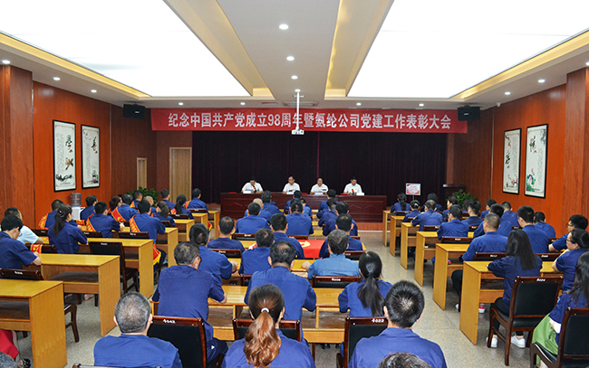 2019年7月1日,在中國共產(chǎn)黨98周年華誕之際,氨綸公司召開紀念中國共產(chǎn)黨成立98周年暨七一表彰大會。