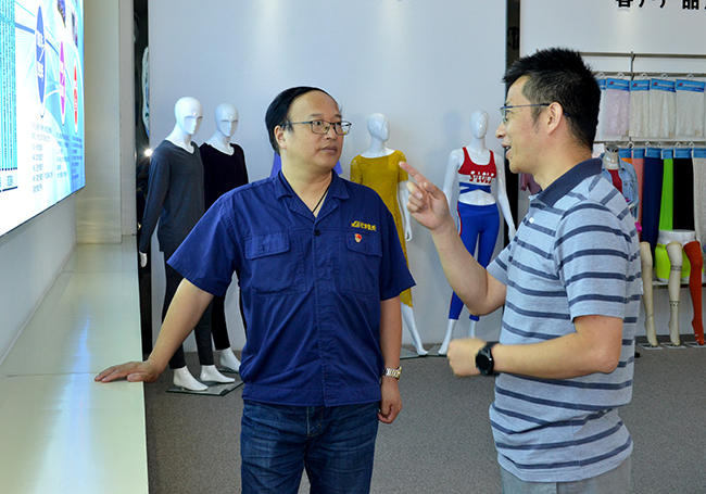 王鋒華總經(jīng)理一行先后參觀了展廳、八期生產(chǎn)車間,觀看了氨綸公司宣傳片。在座談會(huì)上,最后雙方在技術(shù)研發(fā)、氨綸市場走向等方面交換了意見。