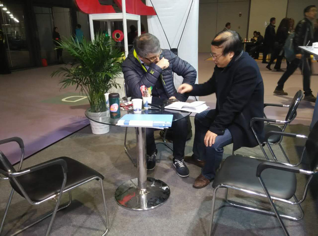 圖為奧神氨綸展位絡(luò)繹不絕的客戶