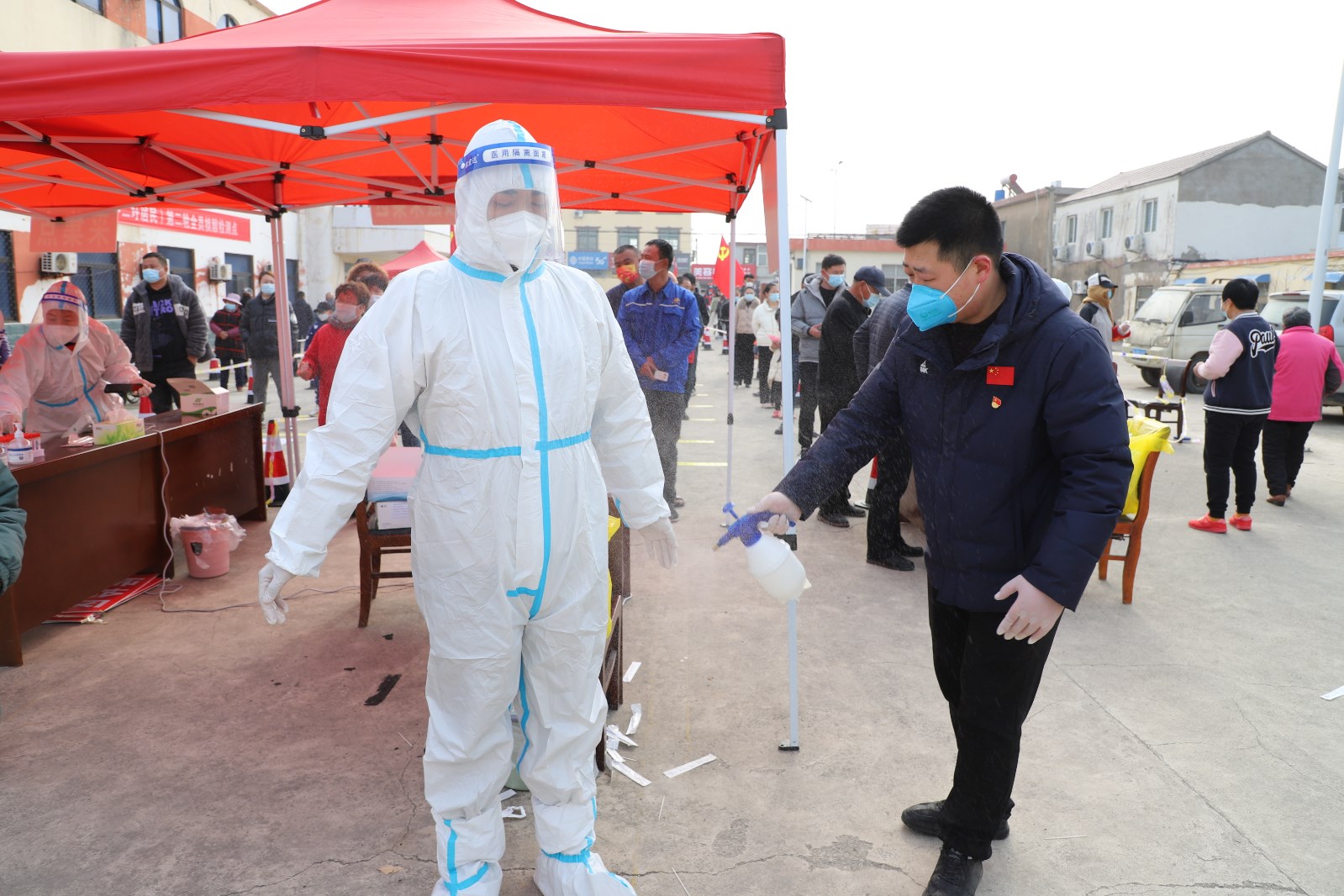 上午七點半核酸檢測開始,檢測點均按照要求,統(tǒng)一設(shè)置了信息登記區(qū)、采樣區(qū)等。馬路上居民排著整齊的隊,志愿者不住地提醒居民要保持“一米線”以上的間隔。除了做好現(xiàn)場引導(dǎo),全員核酸檢測工作開展后,灌西社區(qū)志愿者開展“敲門行動”,挨家挨戶動員居民參加第二輪全員核酸檢測,做到不遺漏一人。