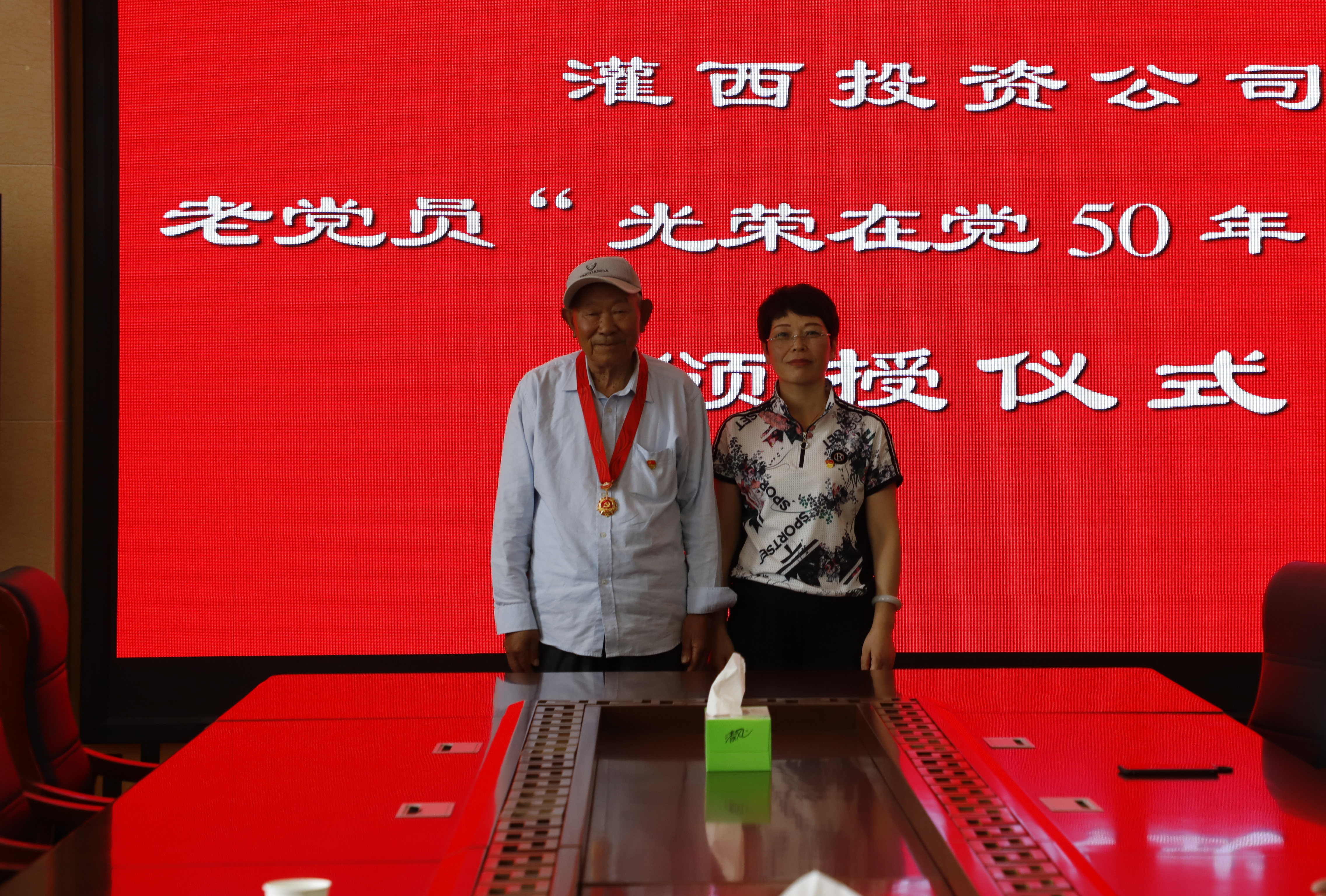 “五十年黨齡,五十載光榮”。6月29日下午,灌西“光榮在黨50年”紀(jì)念勛章頒授儀式在機關(guān)三樓舉行,投資公司黨委副書記、工會主席王宏向黨齡達(dá)到50年的兩位老黨員代表頒發(fā)紀(jì)念章,工會、黨群、紀(jì)委人員參加頒發(fā)儀式。