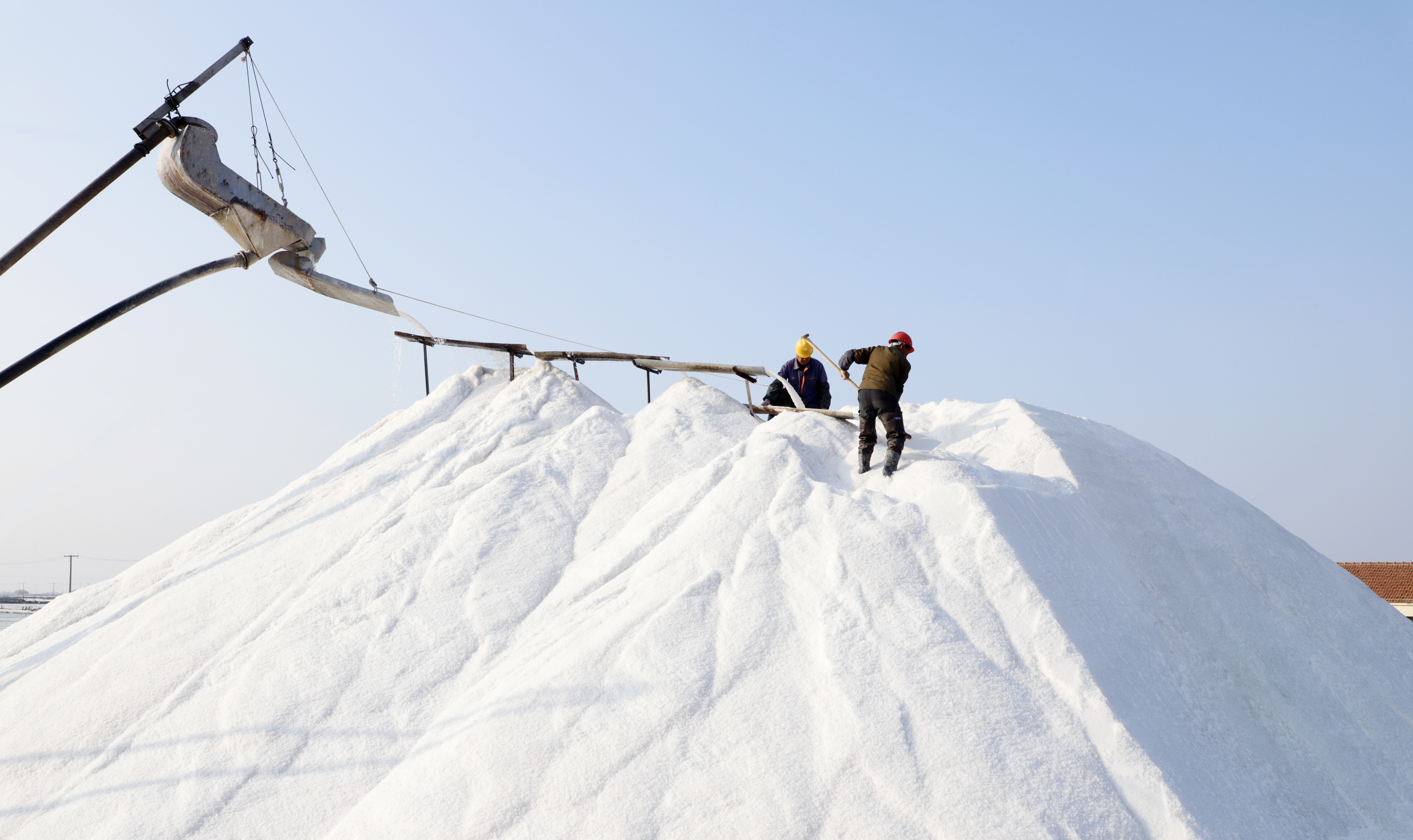 “春種一粒粟,秋收萬(wàn)顆子”。又是一年春季,在大地上撒下種子,等待秋季收獲糧食。3月4日,日曬制鹽公司萬(wàn)畝鹽田機(jī)器轟鳴,一池池“雪鹽”銀光閃閃,一條條“銀瀑”臨空而下,這里不是平日里土地上的春耕春種,而是利用潮汐收集海水,風(fēng)能、太陽(yáng)能蒸發(fā)制鹵,最后結(jié)晶成鹽。
