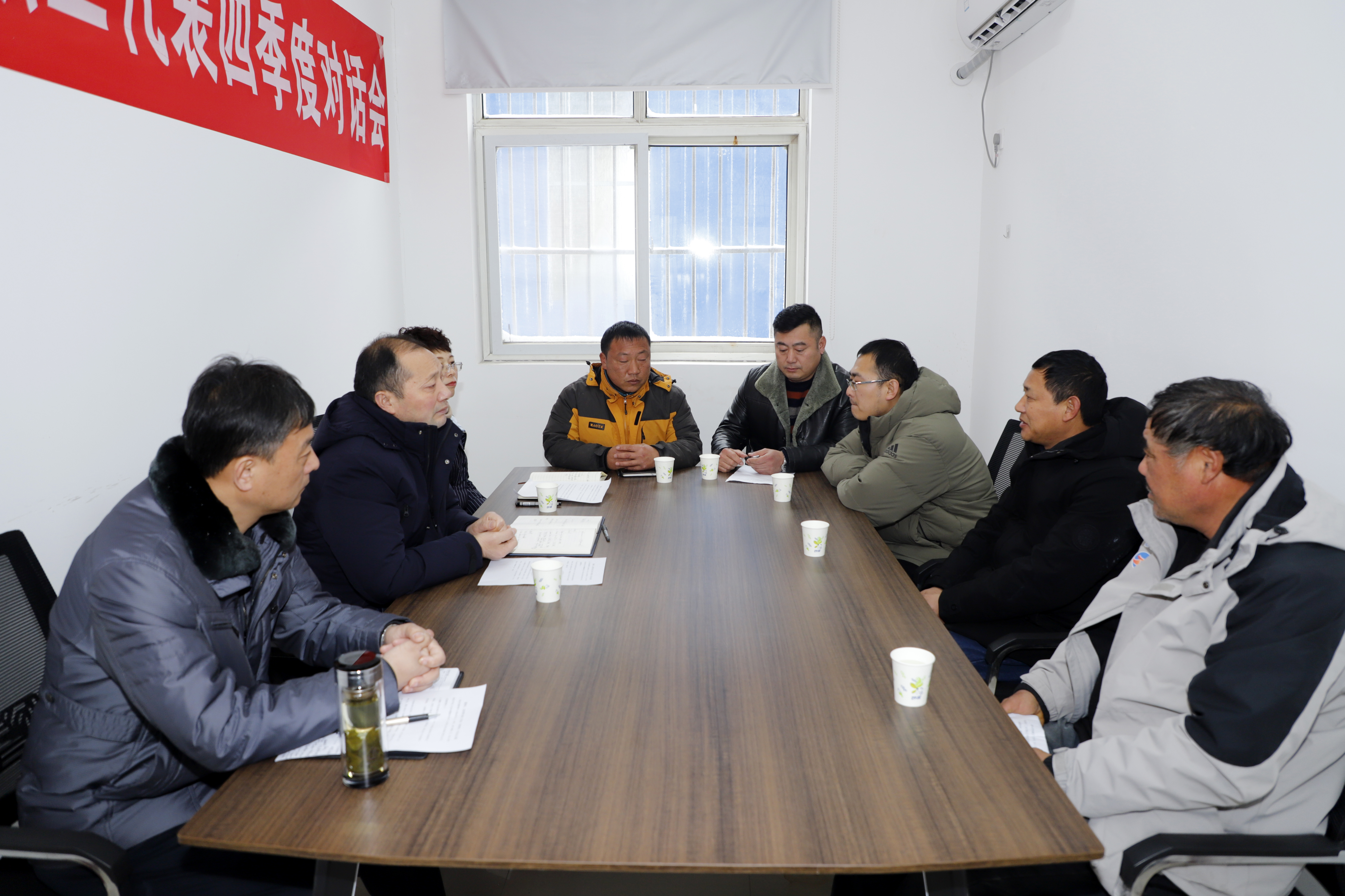12月29日下午,灌西投資公司在中二圩社區(qū)服務(wù)中心會議室召開四季度董事長與職工代表對話會。投資公司黨委書記、董事長、總經(jīng)理李國文,常務(wù)副總經(jīng)理吳衛(wèi)平,黨委副書記、工會主席王宏與職工代表對話。
