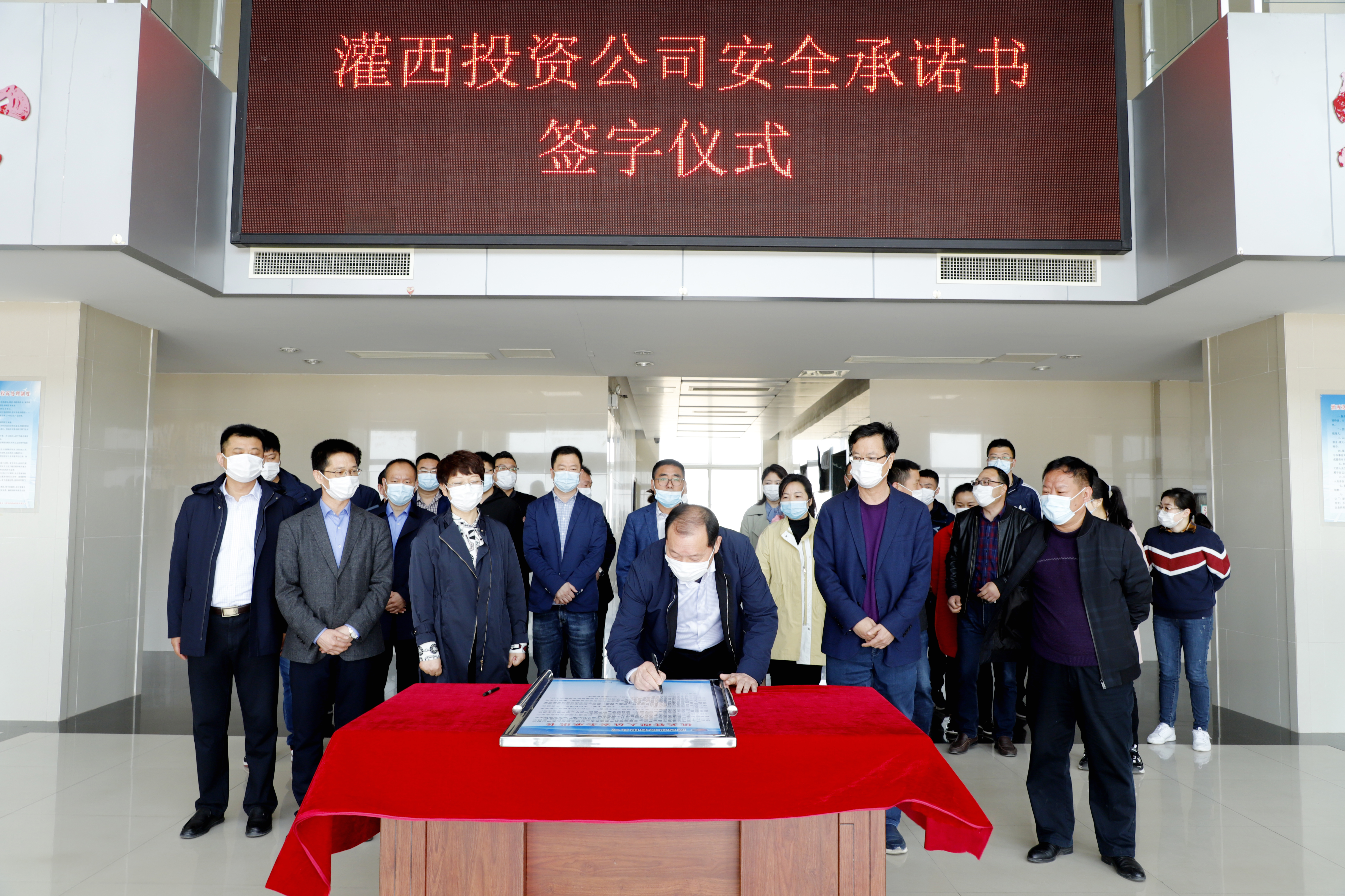 為確保安全生產(chǎn)工作的落實(shí),4月28日上午,灌西公司舉行了安全生產(chǎn)承諾書簽字儀式。在布置一新的簽字現(xiàn)場,黨委書記、董事長、總經(jīng)理李國文帶頭在承諾書上鄭重地簽下了自己的名字。