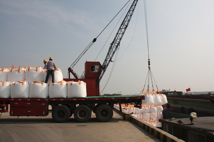 國慶長假期間,除了10月1日天氣因素影響外,宵洋公司職工們和往常一樣,輪班堅守在五灌河碼頭,隨時做好40萬噸噸袋物資的裝卸工作,決不耽誤客戶的正常生產(chǎn)和產(chǎn)品運輸業(yè)務(wù),他們用無私奉獻、敬業(yè)愛崗和加班加點的實際行動,在工地上慶祝祖國的66歲華誕。從早上上班開始,他們便一直忙個不停,汗流下了就用毛巾擦一把,累了就輪流短暫歇一會,餓了就在工地的簡易食堂吃個便飯,經(jīng)常一干就是從早上到天黑,當天的任務(wù)不完成沒有一個人提出下班回家。據(jù)值班的黨支部副書記劉樹龍介紹,國慶期間碼頭平均每天裝卸噸袋物資接近2000噸,裝卸總量大約1萬噸。
