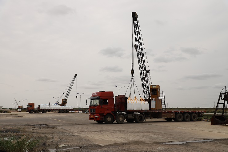 這兩天,家家戶戶都在享受著雙節(jié)來(lái)臨的喜悅,然而來(lái)自宵洋物流公司五灌河碼頭的全體員工卻沒(méi)有閑著。十月三日,天氣稍有好轉(zhuǎn),碼頭上就瞬間忙碌起來(lái),裝運(yùn)噸袋的車輛來(lái)來(lái)回回、一輛接著一輛。工人們也按照事先分配好的工作任務(wù)有條不紊的進(jìn)行著掛鉤、轉(zhuǎn)運(yùn)、解勾等工作流程,讓每一包噸袋都準(zhǔn)確無(wú)誤的碼放在船艙內(nèi)。