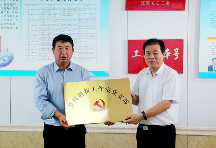 在日曬制鹽公司新河分公司的安樹林勞模創(chuàng)新工作室現(xiàn)場,丁書記一行觀看了技術(shù)創(chuàng)新成果展示專題片,還為工作室的“勞模創(chuàng)新工作室黨支部”進(jìn)行了授牌。
