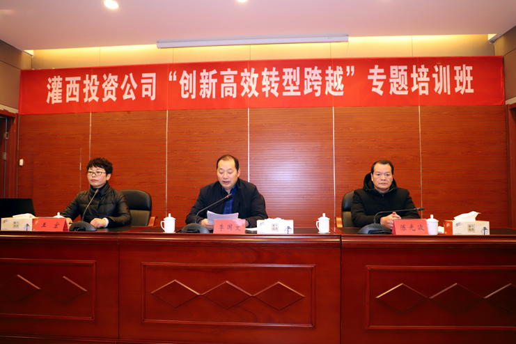 為提高干部綜合素質(zhì),加快推進(jìn)公司創(chuàng)新轉(zhuǎn)型發(fā)展。12月19日上午,灌西投資公司中層管理人員共60人前往灌云縣委黨校進(jìn)行為期兩天的培訓(xùn)。黨委書記、董事長、總經(jīng)理李國文、縣委黨校校長陳光波出席開班儀式并講話。