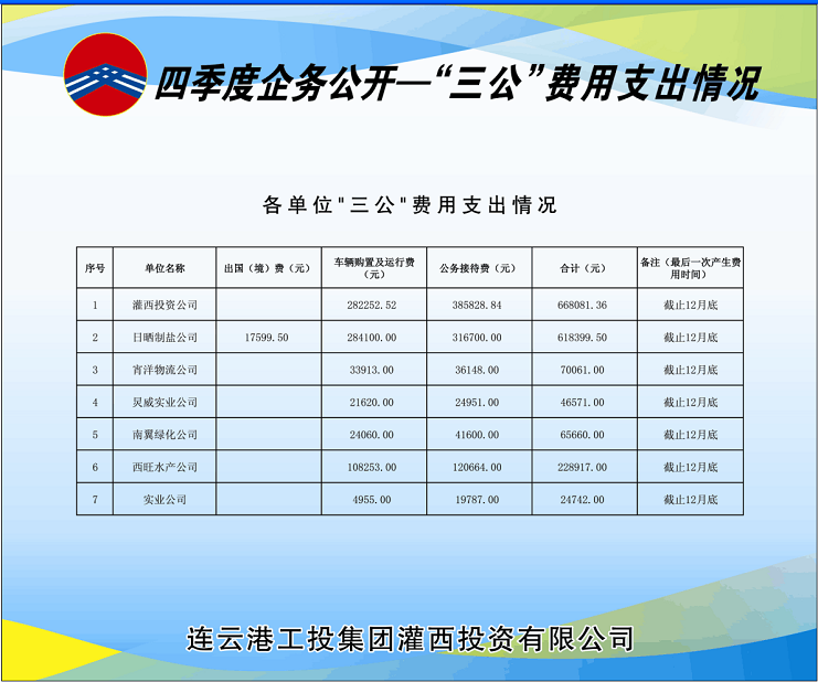 | 1 | 灌西投資公司 | 282252.52 | 385828.84 | 668081.36 | 截止12月底 | |