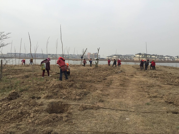 3月29日,南翼綠化公司100余名工人在大棚湖周邊開展植樹造林活動(dòng)。