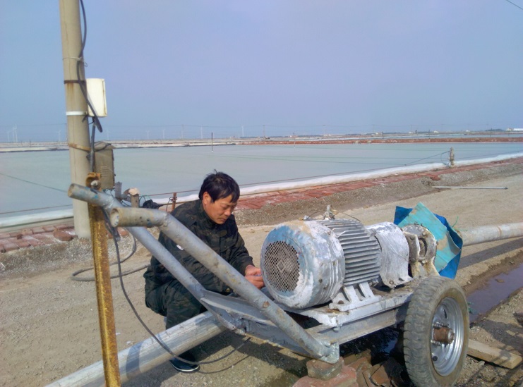 由于公司改革改制的深入,日曬制鹽機(jī)電工全部下放到生產(chǎn)班組進(jìn)行機(jī)電設(shè)備的維護(hù)管理,并負(fù)責(zé)扒鹽過(guò)程中機(jī)械和電氣設(shè)備的維護(hù)使用。雖然身為機(jī)電班長(zhǎng),但是嚴(yán)德軍和大家一樣二話不說(shuō),帶頭服從大局沉到生產(chǎn)班組,不僅維護(hù)好灘地機(jī)械設(shè)備,及時(shí)處理機(jī)電故障,而且保證扒鹽工作的順利進(jìn)行。同時(shí),嚴(yán)德軍還利用自己的業(yè)務(wù)技術(shù),擔(dān)當(dāng)起日曬制鹽公司新河、埒南兩個(gè)單位的灘地電力技術(shù)指導(dǎo)任務(wù),哪里機(jī)械和電力線路出現(xiàn)疑難問題,他總是隨叫隨到,和同志們一起研究解決方案,不影響扒鹽和生產(chǎn)工作的開展。新河分公司一個(gè)扒鹽機(jī)泵遙控器失靈無(wú)法操作,維修人員怎么也找不出原因,他通過(guò)對(duì)該遙控器關(guān)鍵線路檢測(cè),很快發(fā)現(xiàn)了一個(gè)小的接線點(diǎn)沒有連接好,并且迅速解決了問題。生產(chǎn)服務(wù)公司鈣液基地一臺(tái)機(jī)泵的熱繼電器出現(xiàn)保護(hù)現(xiàn)象,不能正常工作,如果不及時(shí)維修好就將影響生產(chǎn)班組鈣液的輸送,繼而影響正常礦鹵除硫,他得知情況后二話不說(shuō)前往對(duì)該機(jī)泵和熱繼電器進(jìn)行仔細(xì)檢查,很快恢復(fù)了該繼電器運(yùn)作,保證了鈣液的正常輸送,為生產(chǎn)班組礦鹵除硫贏得了時(shí)間。