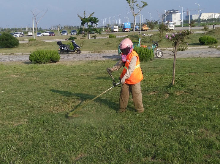 8月11日下午,在臨港產(chǎn)業(yè)區(qū)行政中心的一片草坪上,南翼綠化養(yǎng)護(hù)工人正在除草,修整草坪,在陽光的照耀下,養(yǎng)護(hù)工人的橙色工作服在綠郁蔥蔥的草坪映襯下,分外醒目。只見他們頭戴防護(hù)頭盔,手持割草機(jī),認(rèn)真細(xì)致地修整草坪,割草機(jī)轟鳴聲不絕于耳,尤如交響樂,青草漬的清香味頓時撲鼻而來,一會兒功夫,就清除一大片雜草,原先雜草叢生的草坪煥然一新。當(dāng)前,該公司正深入開展學(xué)習(xí)“華茂精神”活動,結(jié)合公司實際,認(rèn)真學(xué)習(xí)華茂公司的創(chuàng)業(yè)精神、擔(dān)當(dāng)精神、團(tuán)隊精神和奉獻(xiàn)精神,激勵員工發(fā)揚艱苦奮斗不怕吃苦,愛崗敬業(yè)甘于奉獻(xiàn)的精神,不斷提高員工的各項素質(zhì),開展技能與業(yè)務(wù)培訓(xùn),充分發(fā)揮好各位員工的內(nèi)在潛能,樹立主人翁的工作熱情,做好綠化養(yǎng)護(hù)工作,全力向公司年度目標(biāo)任務(wù)沖刺。(季興勝)