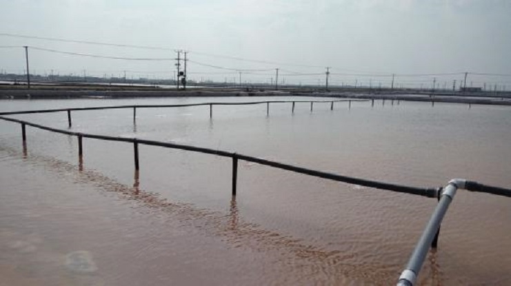 除硫是日曬制鹽制鹽工藝的特點、是原鹽質(zhì)量的根本保證,因加入鈣液量較小,和除硫鹵水均勻混合比較困難。盡管不少班組采用人工或者機械攪拌,終因洼站面積較大,始終不盡人意。最近,生產(chǎn)服務(wù)公司經(jīng)理劉文能同志帶領(lǐng)生產(chǎn)服務(wù)公司全體人員研究,最終決定采用農(nóng)田打滴灌溉原理。用塑料管圍繞洼站一圈,根據(jù)塑料管孔徑計算眼數(shù),使鈣液分布均勻加入,這樣鈣液和鹵水充分接觸,提高反應(yīng)速度,減少除硫時間,徹底解決除硫攪拌問題。(孫何瑜)
