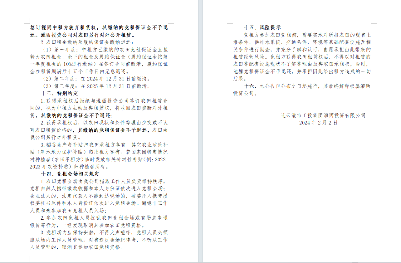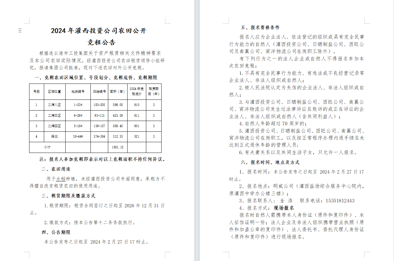 2024年灌西投資公司農(nóng)田公開 競(jìng)租公告