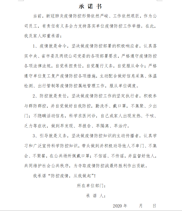 抗擊新冠肺炎疫情承諾書(shū)