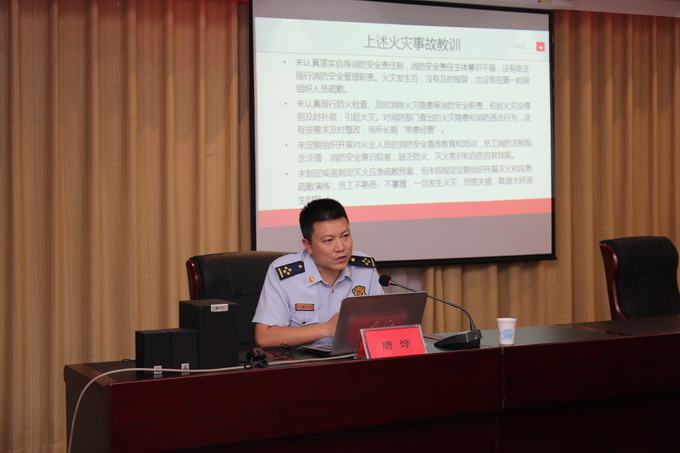 為規(guī)范消防安全管理,提高公司干部職工消防安全意識(shí)和火災(zāi)應(yīng)急處置能力,7月7日,我公司邀請(qǐng)連云區(qū)消防隊(duì)副隊(duì)長(zhǎng)唐燁,在三樓會(huì)議室開(kāi)展消防安全知識(shí)培訓(xùn)。公司董事長(zhǎng)、黨委書(shū)記、總經(jīng)理朱桂玉,黨委副書(shū)記、工會(huì)主席曹開(kāi)明,副總經(jīng)理何啟明,總經(jīng)理助理李忠祥,各單位、車(chē)間、部室人員參加了培訓(xùn)。