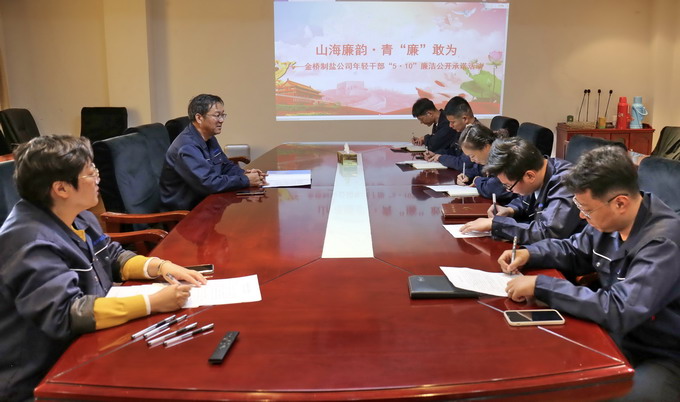 為進一步強化年輕管理人員擔(dān)當(dāng)意識和廉潔意識,推動公司黨風(fēng)廉政建設(shè),5月10日,我公司紀(jì)委開展“山海廉韻.青‘廉’敢為”主題承諾活動。公司黨委副書記、紀(jì)委書記、工會主席曹開明主持會議,公司全體“90”后管理人員參加會議。