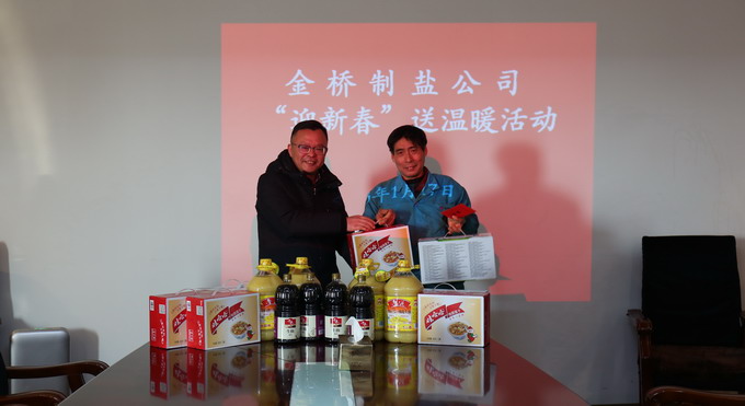 1月17日上午,我公司開展“迎新春”送溫暖活動。公司黨委書記、總經(jīng)理田磊,黨委副書記、紀委書記、工會主席曹開明和副總經(jīng)理李忠祥代表公司慰問困難黨員和困難職工,為他們發(fā)放油、牛奶等慰問品和慰問金,囑咐他們要克服困難、樹立信心,保持積極向上的心態(tài),早日走出困境。(金宣)