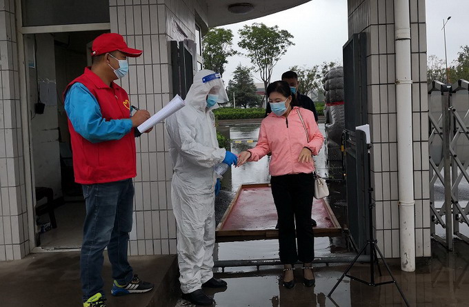 機(jī)關(guān)部室志愿者配合做好體溫測(cè)量、消毒及進(jìn)出人員登記