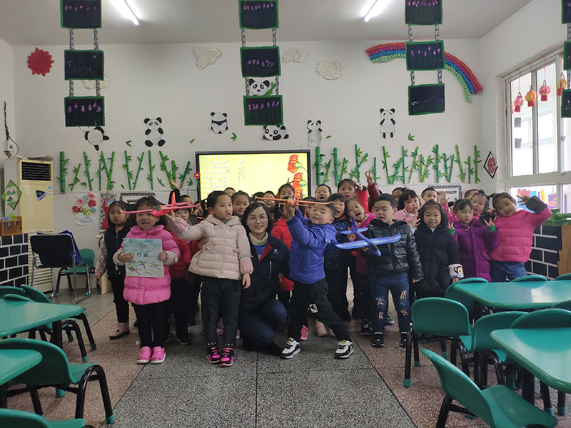 最后科普人員向孩子們分發(fā)手拋飛機(jī)玩具,科普人員與孩子們一起動手,拼接好玩具,并講解正確的飛行方法。孩子們開心地拿著飛機(jī)玩具在教室里放飛,看著飛機(jī)可以飛向他們所拋的方向,他們歡呼雀躍。
