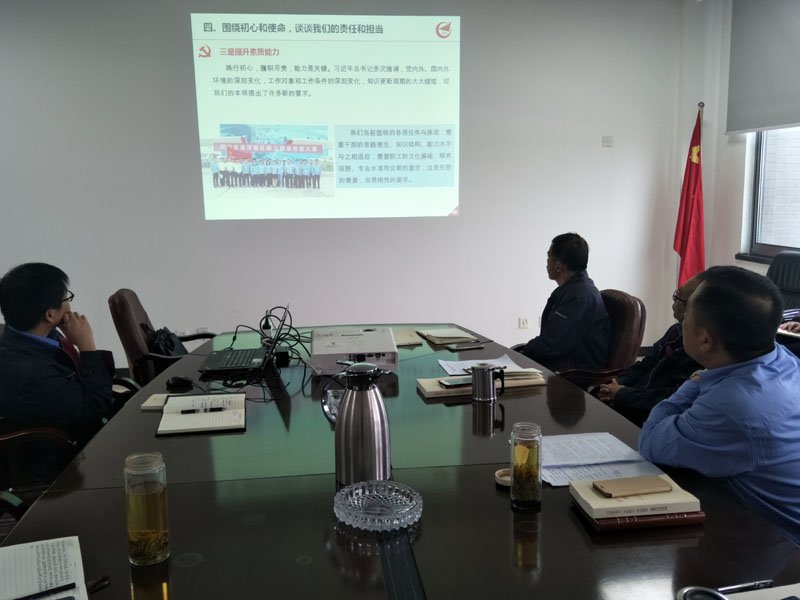 近日,根據(jù)公司黨支部“不忘初心、牢記使命”主題教育安排,公司領(lǐng)導(dǎo)班子成員分別到各部門開展調(diào)研座談;公司黨政主要領(lǐng)導(dǎo)結(jié)合學(xué)習(xí)、調(diào)研及聽取意見情況分別講授了專題黨課;全體黨員對(duì)照黨章黨規(guī)找差距檢視問題,推動(dòng)主題教育持續(xù)縱深開展。