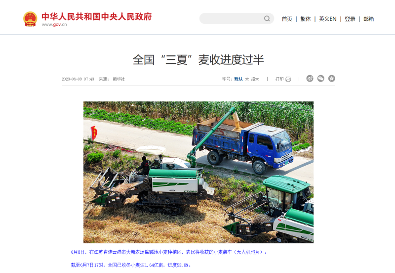 自6月8日麥?zhǔn)展ぷ鲉?dòng)以來,青口投資公司高度重視、精心組織,科學(xué)高效調(diào)動(dòng)全方面因素,全力投入耐鹽堿小麥?zhǔn)崭罟ぷ鳎?/span>開創(chuàng)了農(nóng)業(yè)高質(zhì)發(fā)展新局面,受到了中國(guó)政府網(wǎng)、人民網(wǎng)、新華社、新華網(wǎng)、連云港日?qǐng)?bào)、蒼梧晚報(bào)等中央、省市級(jí)主流媒體的廣泛關(guān)注。(青 宣)