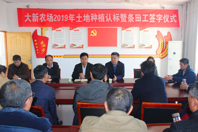 為序時(shí)推進(jìn)農(nóng)業(yè)生產(chǎn),確保各項(xiàng)生產(chǎn)工作快速啟動(dòng), 3月22日上午, 公司舉行大新農(nóng)場 2019年土地種植認(rèn)標(biāo)暨條田工簽字儀式,公司總經(jīng)理史祥平、副總經(jīng)理周緒祥出席。