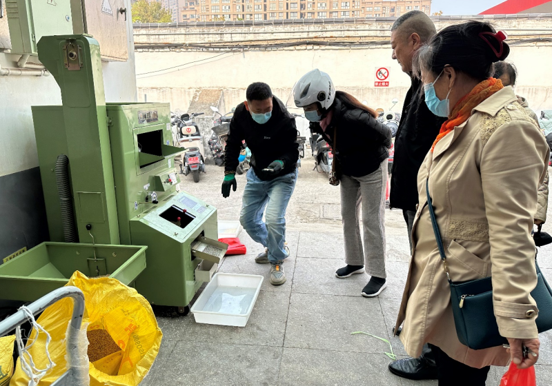 米業(yè)營銷中心:稻米現(xiàn)場脫殼吸引市民購買