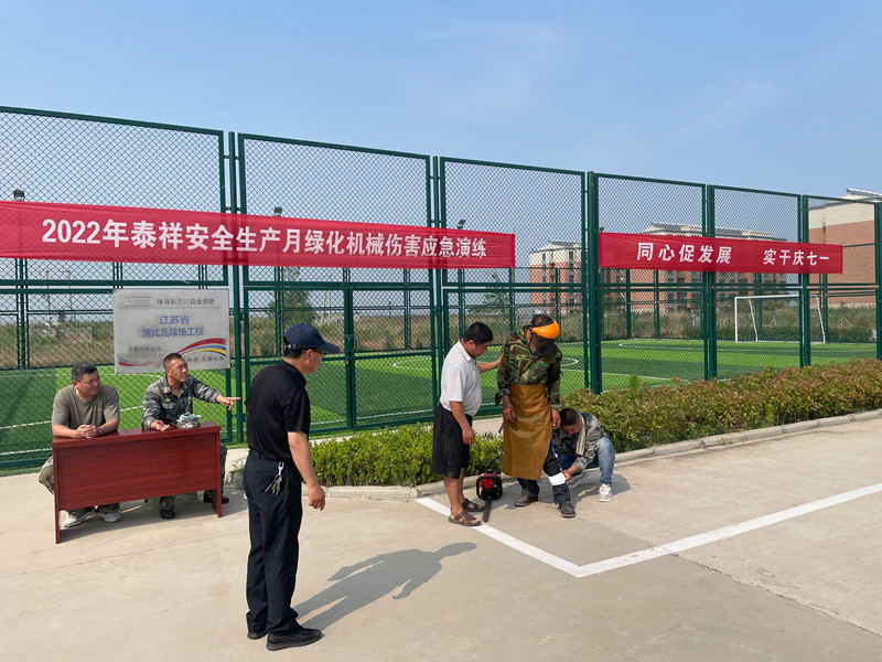 為了有效應(yīng)對(duì)突發(fā)事件的處置能力,提高員工安全防范意識(shí)。6月22日下午,在泰祥門前小廣場(chǎng)舉行泰祥綠化機(jī)械傷害應(yīng)急演練。