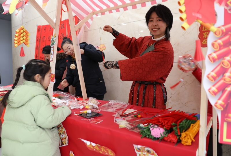 剪窗花、寫對聯(lián),是迎接新年必不可少的傳統(tǒng)習俗,承載了我們對新一年的美好期望。在傳統(tǒng)民俗區(qū),大家沉浸式體驗這些傳統(tǒng)習俗,有的揮毫潑墨,“寫春送?!?,有的剪紙寄情,剪出各種各樣象征生肖、團圓、吉祥的窗花,不一會兒,一幅幅滿載新年祝福的春聯(lián),一張張年味濃濃的窗花,就展現(xiàn)在大家面前。