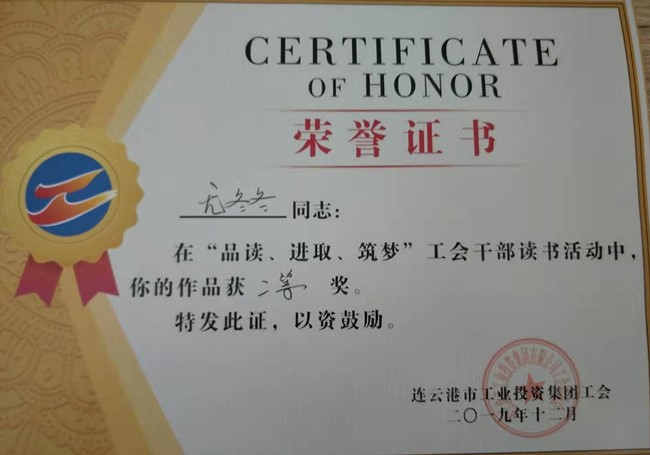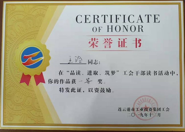 ??? 今年2月起,集團(tuán)公司工會開展了以“品讀、進(jìn)取、筑夢”為主題的工會干部讀書活動,青口公司工會干部積極響應(yīng)活動要求,認(rèn)真撰寫讀書心得體會文章,共上報九篇體會文章參加評選,經(jīng)集團(tuán)工會審定評選,我公司王玲《且思且說且努力》獲得一等獎、尤冬冬《如何掌控這個變化的世界》獲得二等獎,另有多人獲得三等獎及優(yōu)秀獎?!。ㄇ喙ぃ?/span>