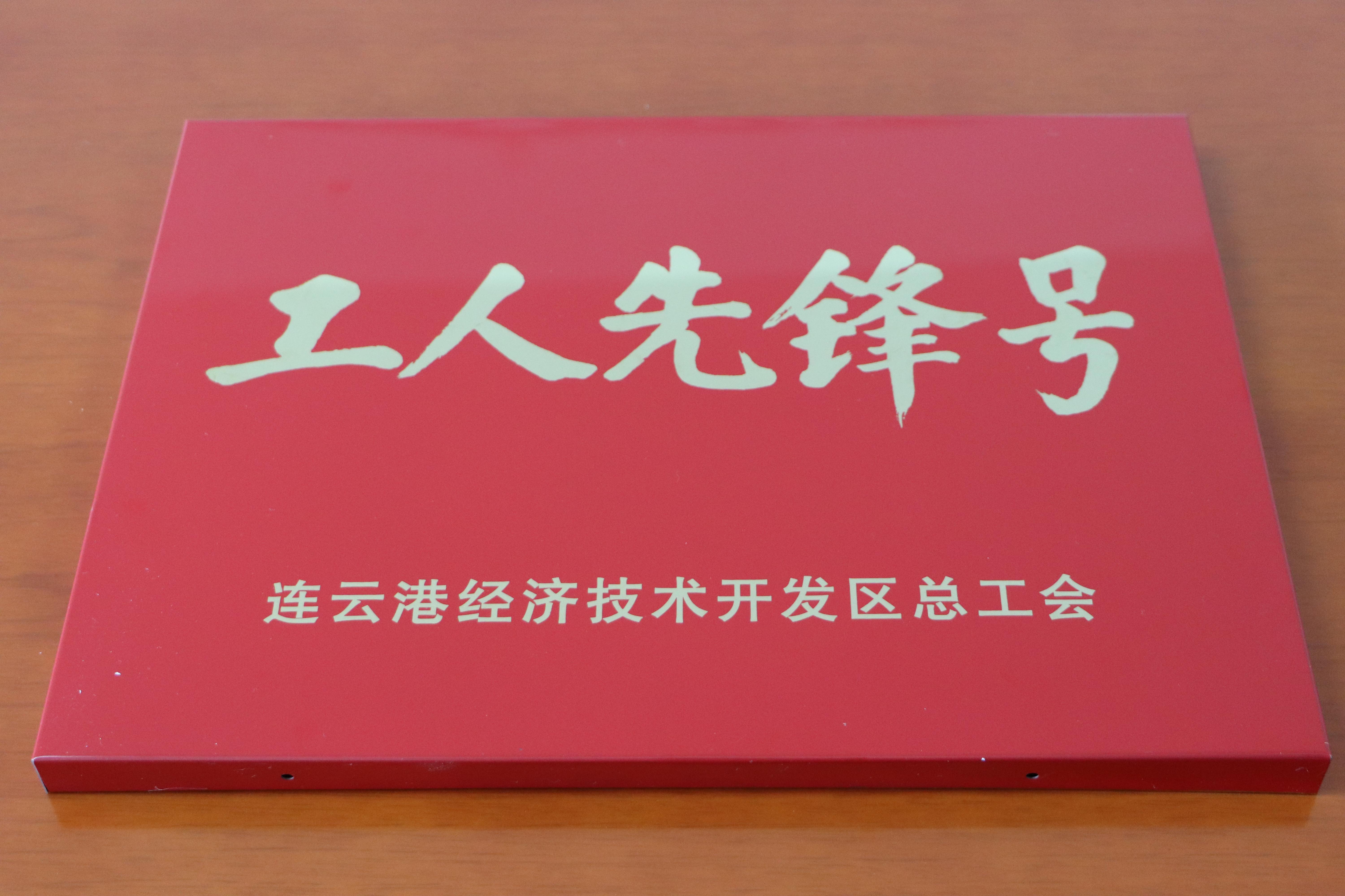 近日,公司捷報(bào)頻傳,自生產(chǎn)線一名員工被授予市勞模稱(chēng)號(hào)后,5月11日上午,公司又從猴嘴街道辦事處工會(huì)領(lǐng)回獎(jiǎng)牌,公司生產(chǎn)丙班被授予“連云港經(jīng)濟(jì)技術(shù)開(kāi)發(fā)區(qū)工人先鋒號(hào)”。