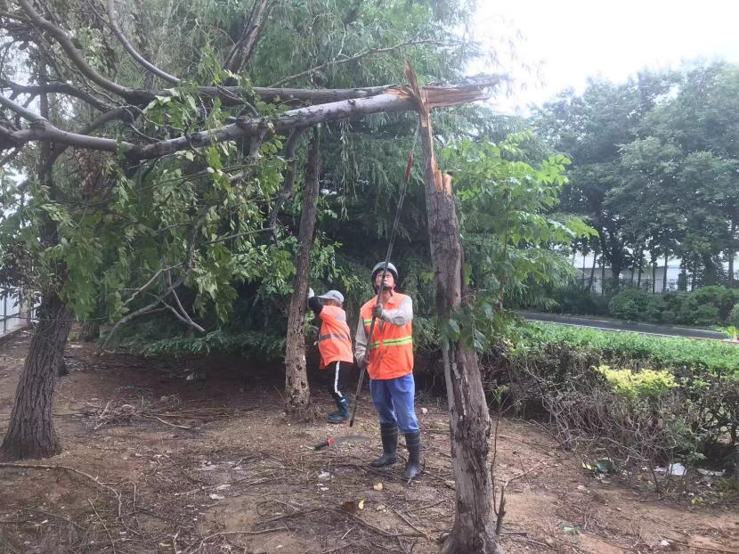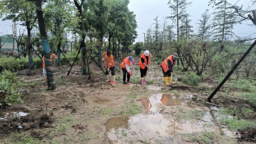綠化分公司全力以赴筑牢汛期“安全網(wǎng)”,迅速開展應急處理,加大現(xiàn)場巡查力度,及時進行排澇清淤、樹木扶正、強基加固,全力排除險情,保障樹木、苗木安度汛期。截至20日17時,出動巡查人員 56人次,巡查車、高架車、貨車等車輛 24車次,扶正移栽倒伏樹木 70 株,修剪斷枝 12株,加固支撐168株。對云池路、玉竹路、匯晶路等22處路段排澇清淤,及時消除轄區(qū)內(nèi)安全隱患,保障了市民出行安全,鞏固了城市綠化成果。