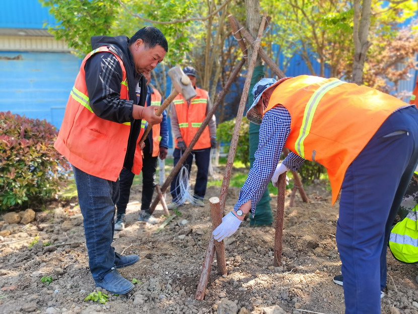 在中科院,只見工程車輛來來往往、橙色身影忙忙碌碌……到處都是一派繁忙、紅紅火火的景象。闖將孫玉虎,虎將金華穿梭在工程現(xiàn)場(chǎng),親自指揮調(diào)度綠化工程收尾工作。大家分工有序:定點(diǎn)劃線、搬運(yùn)苗木、栽植澆水、垃圾清理……有條不紊。中午時(shí)分,熾熱的陽光照在臉上也是火辣辣的,忙碌了一上午的工人大汗淋漓,擰開瓶蓋,咕嚕咕嚕喝了幾大口涼水,用袖子蹭了下額頭的汗,又干勁十足地投入到工作中。