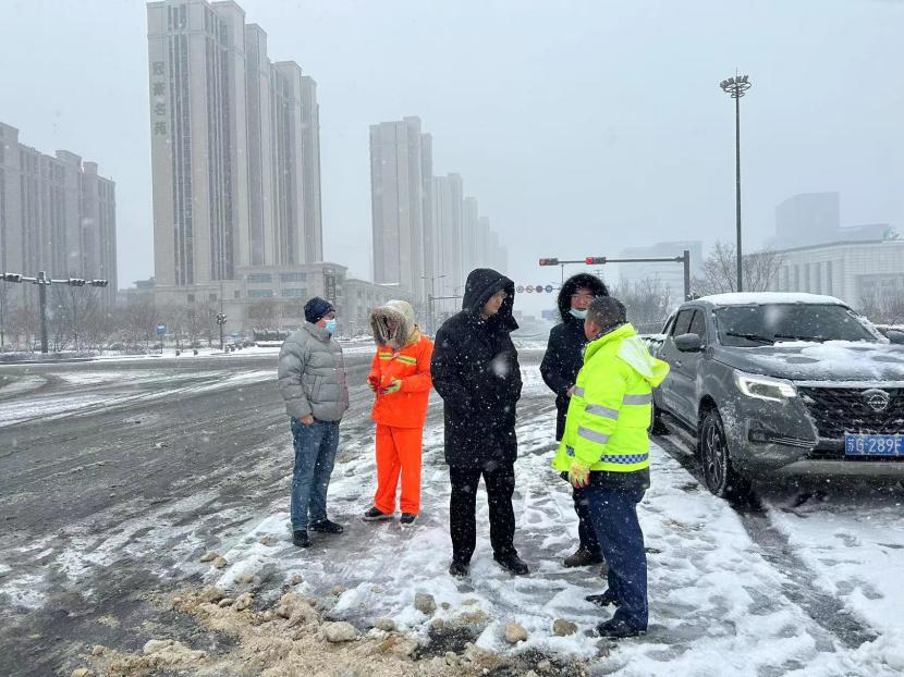 上午10時許,暴雪如約而至。裝有融雪劑的車輛全部整裝待發(fā),聞令而動,采取“人工+機械”不間斷作業(yè)模式,對轄區(qū)主次干道、橋涵、火車站東站、創(chuàng)智大廈等帶坡路段及時拋撒融雪劑,采取“滾刷+鏟車”組合方式,反復(fù)排掃路面積雪,確保主次干道、帶坡路段通暢無冰。