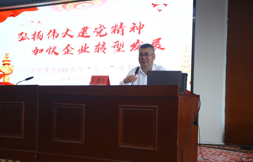 公司黨委書(shū)記、董事長(zhǎng)、總經(jīng)理王德志為與會(huì)黨員上“七·一”專題黨課。他生動(dòng)地闡述了自建黨以來(lái),中國(guó)共產(chǎn)黨一代又一代的領(lǐng)導(dǎo)人帶領(lǐng)中國(guó)人民謀幸福的偉大征程。王德志指出2019至2021三年間,公司業(yè)績(jī)實(shí)現(xiàn)“三連增”,順利完成“一減半、兩年扭虧、三年新高”的發(fā)展目標(biāo)。