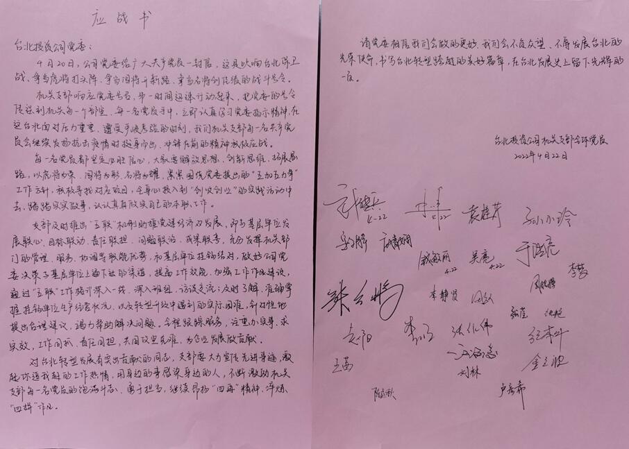 【給黨委回封信】機關(guān)全體黨員簽名應(yīng)戰(zhàn)書